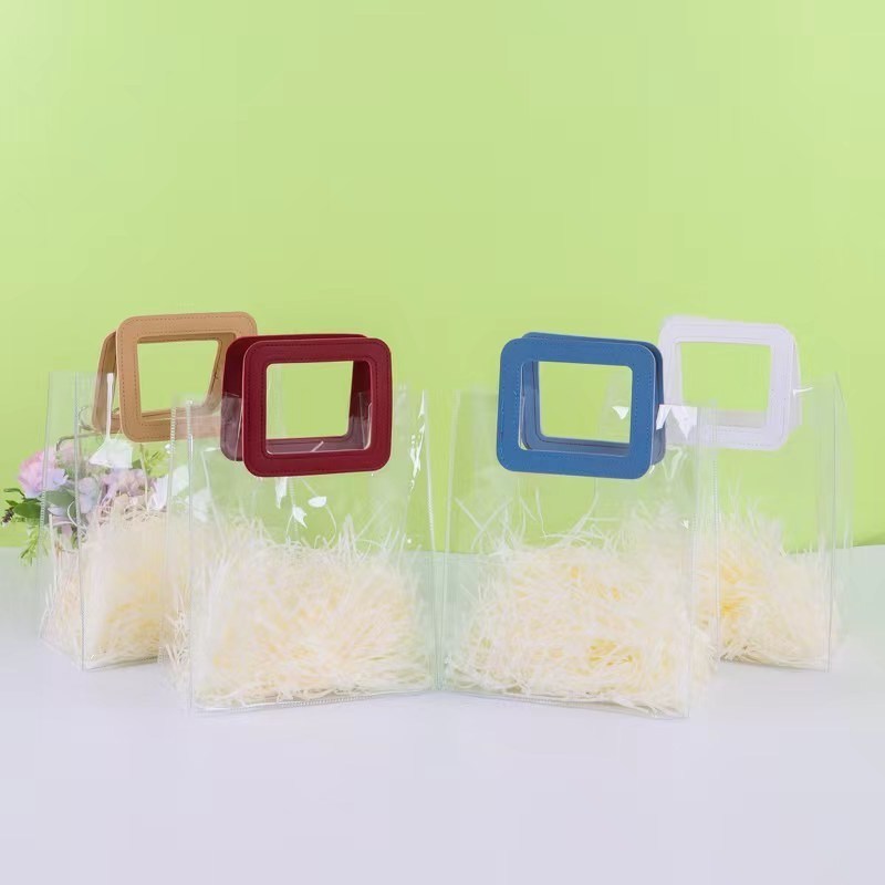 カスタマイズされたロゴ 再利用可能 防水 PVC 透明 トートバッグ ギフトバッグ パッケージ トートバッグ 革柄